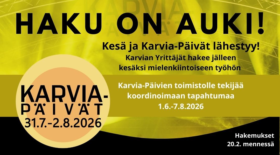 Kesä ja Karvia-Päivät lähestyy. Karvian Yrittäjät hakee jälleen kesäksi mielenkiintoiseen työhön
